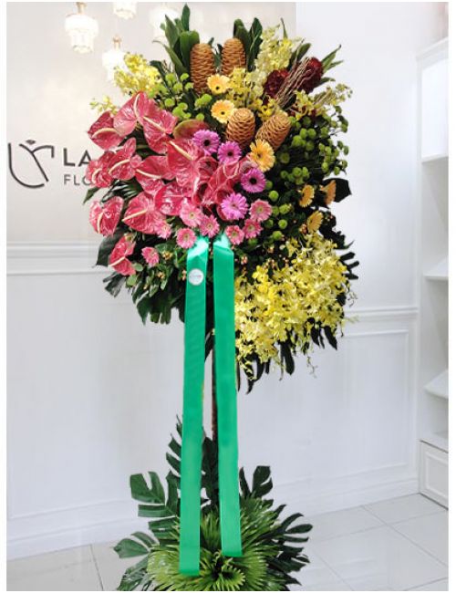 Standing arrangements of tropical flowers, 6-7ft in height. If other flowers not available, will replace with other flowers in equivalent value.