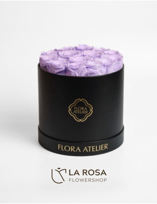 • 14 Preserved Light Purple Roses in Round Box (Black)